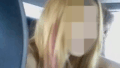 車内で撮影されたという写真。写真の左上に白く不気味に笑う顔のようなものが写り込む。